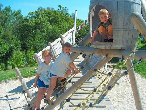 Und zum toben, klettern und erobern bietet der Outdoor-Spielplatz auf drei Ebenen alle Möglichkeiten.