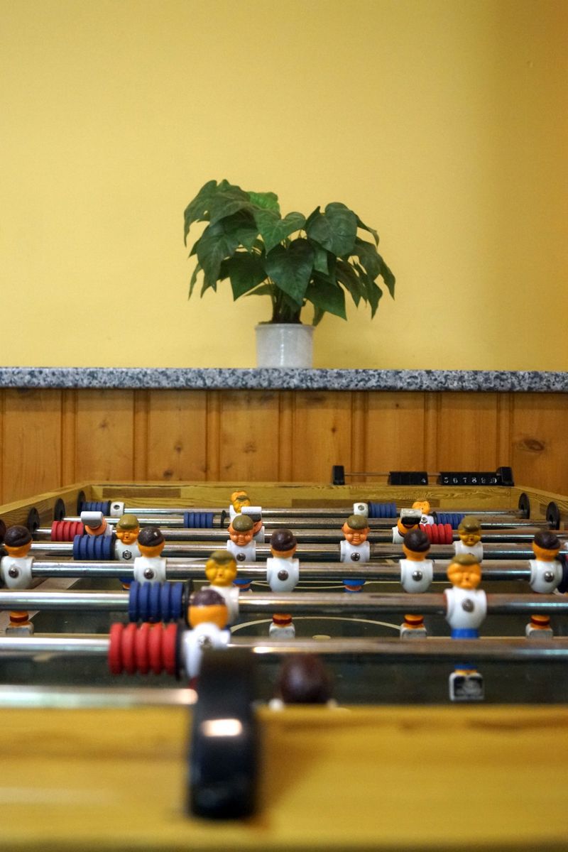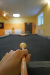 Kein Problem, dann bieten Billardtisch, Dart, Tischtennisplatte, Air-Hockey oder Kicker in unserem Spielekeller genügend Abwechslung. Außerdem stehen verschiedene Brettspiele zur Verfügung.
