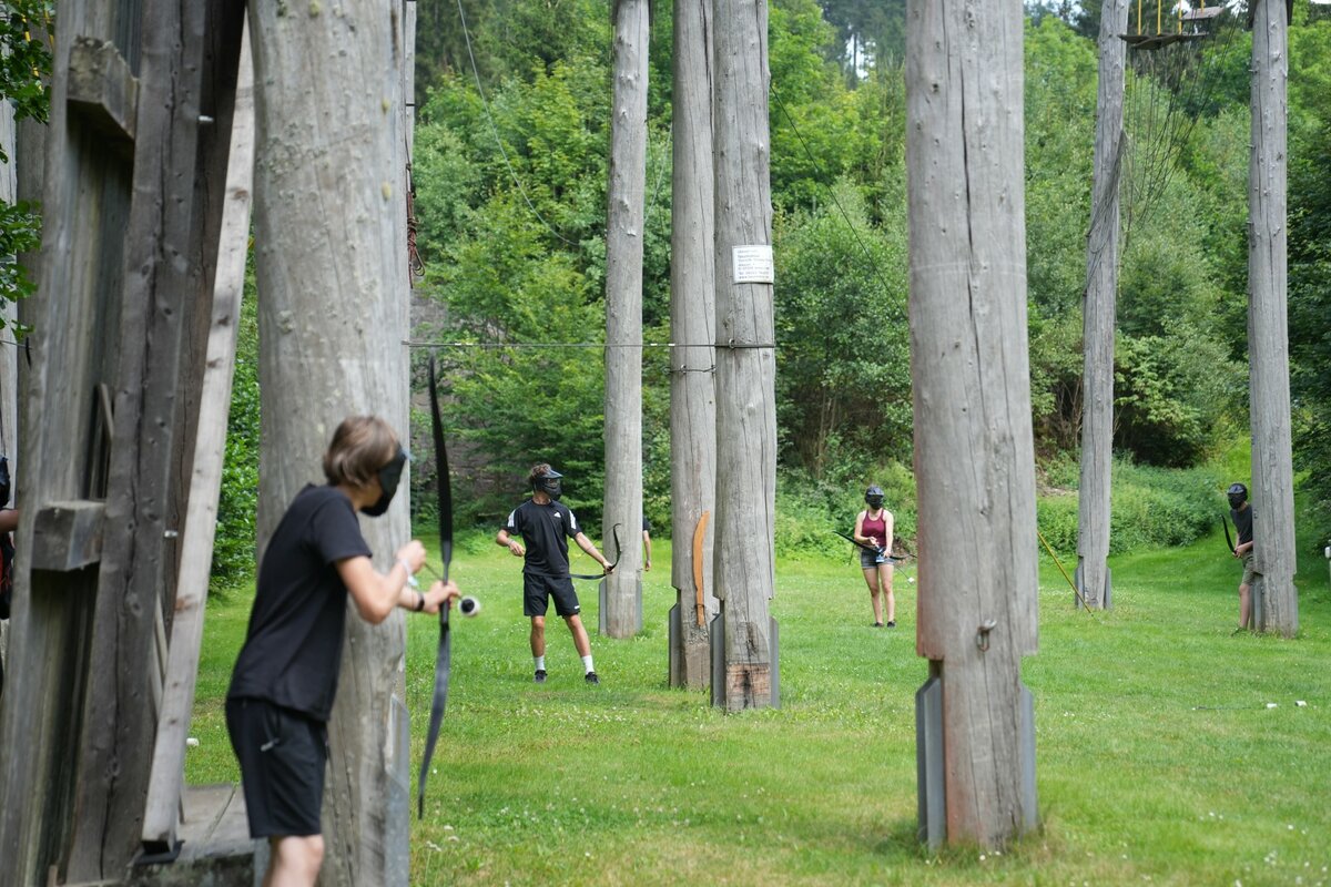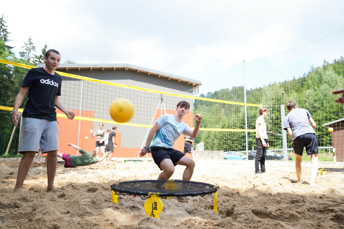 Unser 13.000 m” großes Außengelände lädt nicht nur zu Abenteuer-Romantik am Lagerfeuer und verrückten Outdoor-Spielen im Wald ein, es bietet zudem einen Beach-Volleyballplatz, Tischtennisplatten, Kinderspielgeräte, einen Streetball-Korb und ausreichend Platz für ein Fußballturnier. Die 1,5km entfernt liegende Burgruine Lauterstein ist zudem idealer Zielpunkt für Nacht- oder Fackelwanderungen.