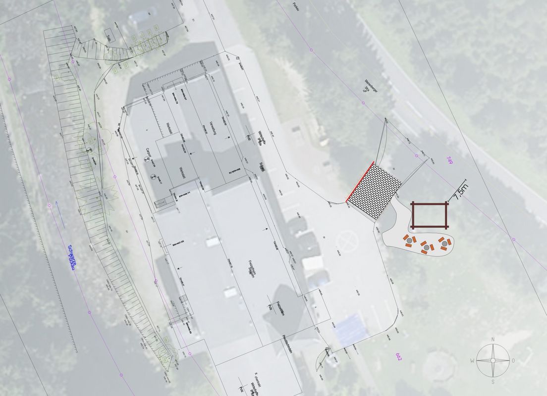 Für den ein oder anderen scheint der Standort fragwürdig, so direkt an der Straße. Für uns ist es das Resultat verschiedener Überlegungen. Die Kapelle soll ein frei zugänglicher und einladender Ort zum Gebet und zur Ruhe sein. Sowohl für die Gäste der Strobel-Mühle, als auch für Wanderer oder Leute die auf der Durchreise sind. Außerdem sind viele Stellen auf unserem Gelände aufgrund der Nähe zur Pockau sehr feucht, was für das Baumaterial ungünstig ist. Und wir wollen mit der Kapelle im Vordergrund der Strobel-Mühle ein für alle sichtbares Zeichen als Christen setzen, was sich in der Bauform wiederspiegeln soll.