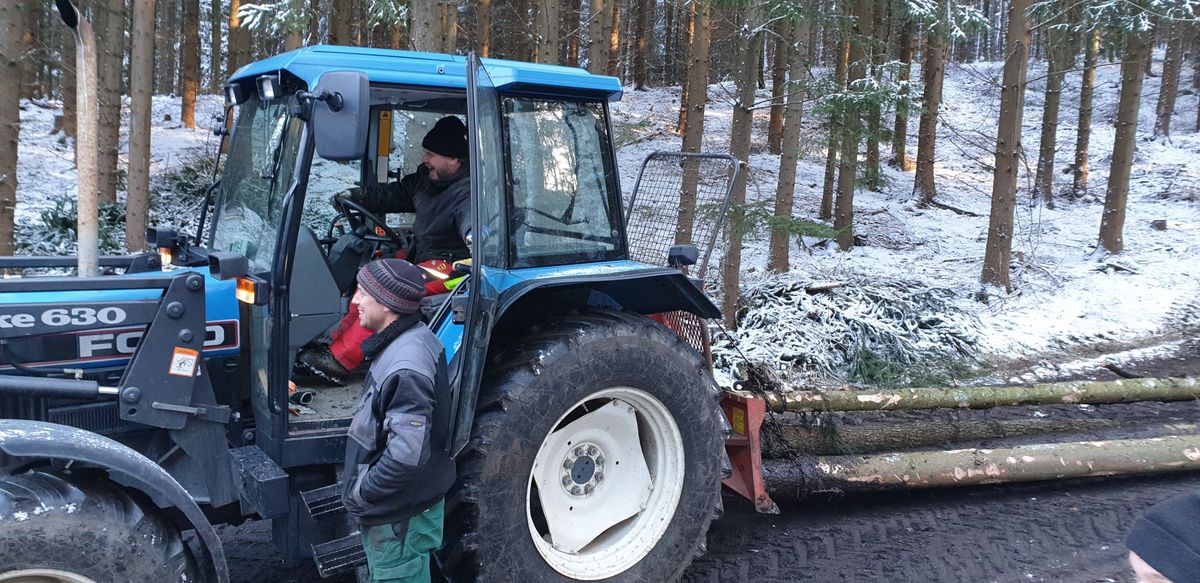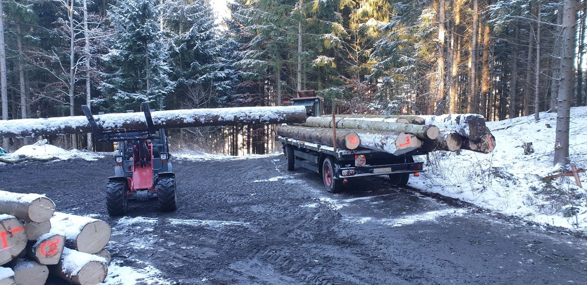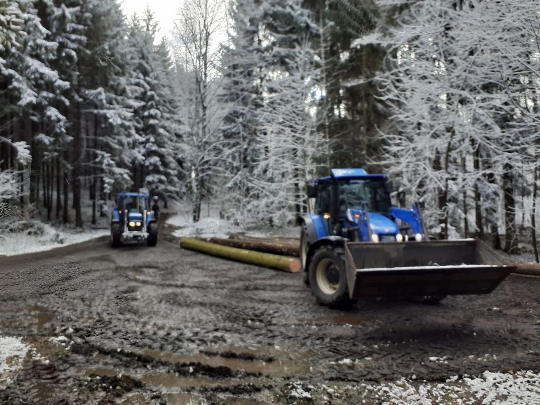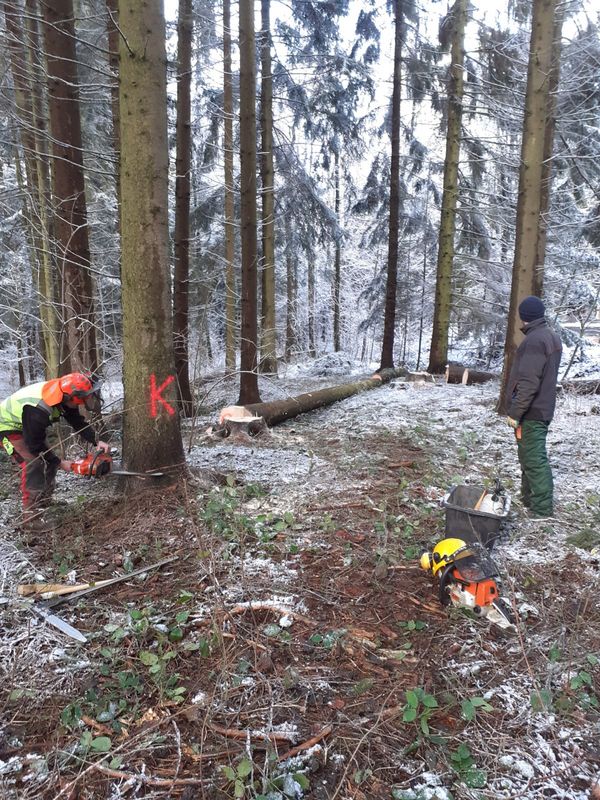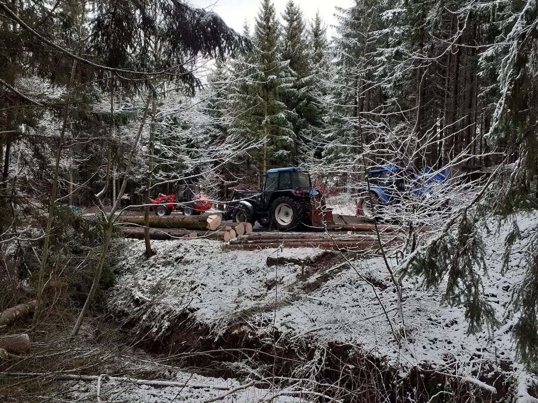 Am 5. und 6. Januar konnten wir mit einem 11- Mann starkem Trupp im Wald die im Herbst gekennzeichneten Bäume fällen. Mit Kettensägen, Traktoren, Hoflader und den motivierten Helfern standen wir ab jeweils 8 Uhr bis zum finster werden im Wald und haben es geschafft alle benötigten Stämme abzulängen, aus dem Wald zu ziehen und auf Holzpolter zu stapeln. Ein Teil des Holzes wurde sogar schon auf´s Geländer der Strobel-Mühle geschafft! Bei wärmeren Temperaturen sollen noch die restlichen Stämme transportiert werden, da es auf dem vereisten Weg aktuell nicht mehr möglich war.
