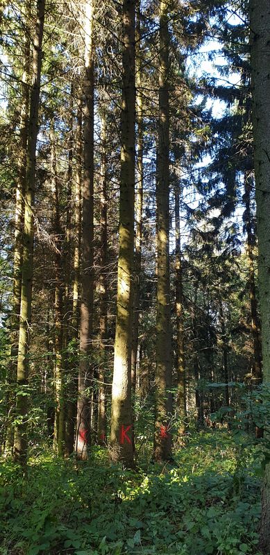 Im Juli konnten wir das Fundament betonieren und seit dem das Gelände rings um die Kapelle Stück für Stück bearbeiten. Im Oktober ging es in den Wald um passende Bäume zu markieren.